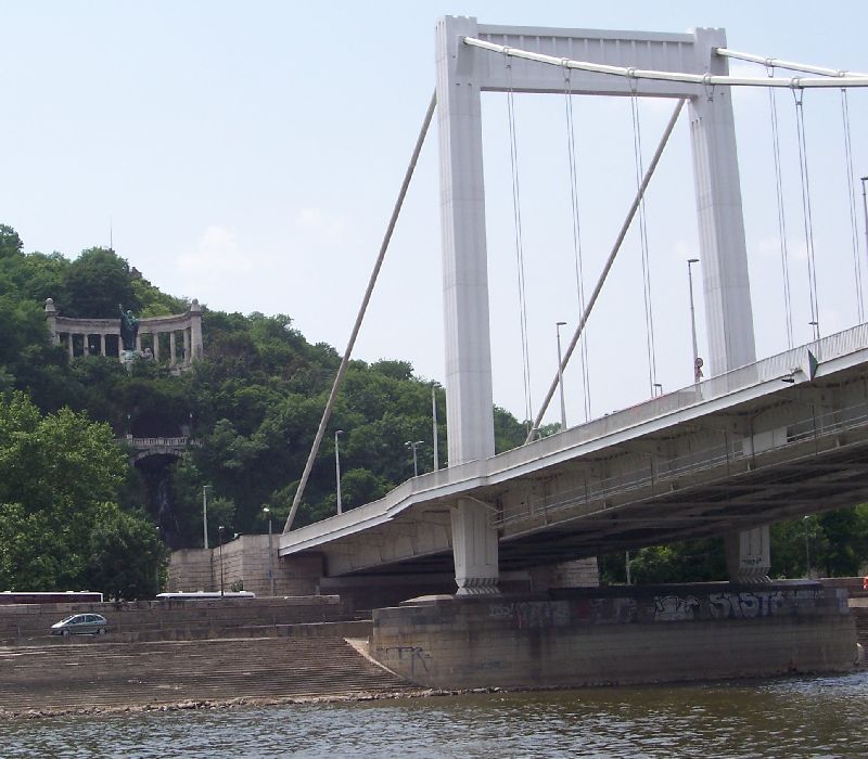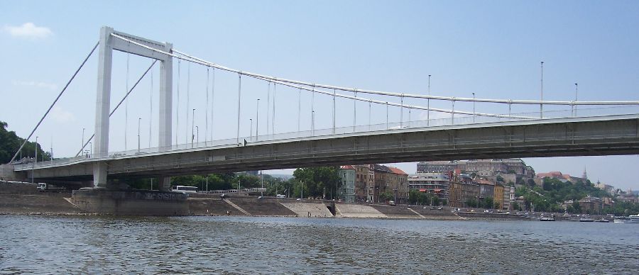 2. Podul alb: Podul Elisabeta (Erzsebeth hid) – poartă numele împărătesei Elisabeta, mai cunoscută sub numele Sissi, soÅ£ia lui Franz Joseph. Podul a fost construit între 1897 ÅŸi 1903 ÅŸi la acel moment era cel mai lung pod suspendat din Europa.
