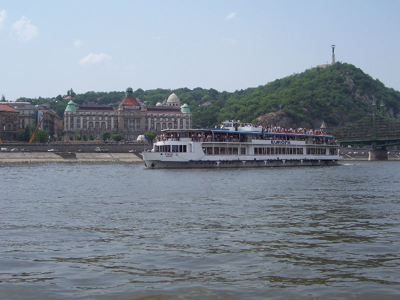 Prima parte a zilei a treia, marţi 22 mai, a fost dedicată unei plimbări cu vaporaşul pe Dunăre. Am ales un vaporaş ce aparţine de compania publică metropolitană de transport a Budapestei. Cost de persoană: 2,70 euro un drum din centru pînă la Romaifurdo, undeva la marginea Budapestei. Traseul a durat o oră şi 45 de minute, dar timpul trece foarte repede: ai ce vedea, poţi sta pe o băncuţă jumătate afară, să te bată curentul, sau te poţi chiar întinde pe canapele din interior. Noi am preferat să stăm la aer, mai ales că nu mai era aşa de cald, din cauza unei ploi rare. Din zona Romaifurdo am ajuns înapoi în oraş cu HEV-ul, metroul de suprafaţă al oraşului.